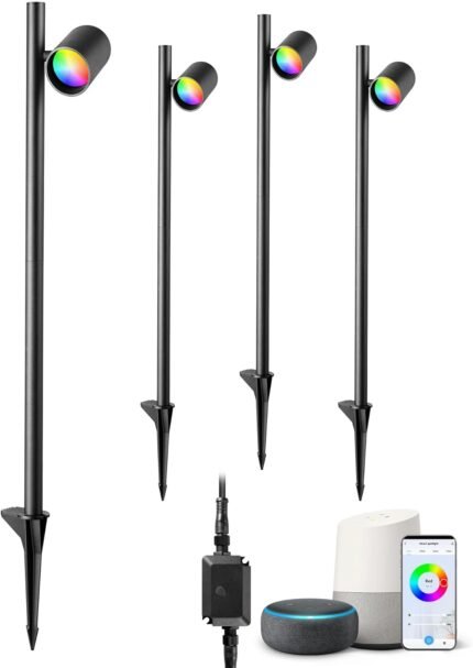 EDISHINE 30“ Christmas Smart Color Changing Landscape Lighting, 320° Head Adjustable, 300LM RGBW Outdoor Landscape Spotlight, IP67 Waterproof Spot Lights, APP Control, Work with Alexa & Google, 48FT