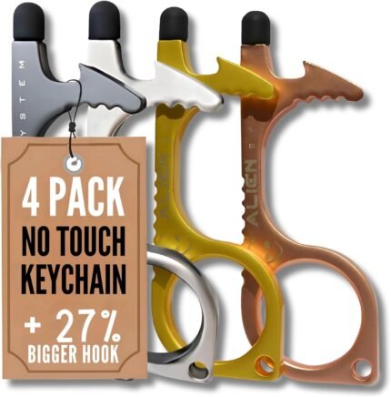 No Touch door opener tool – Premium Touchless key tool – No touch key – by Alien System (Silver Pearl + Gun Grey + Gold + Rose Gold, 4 pack Large)