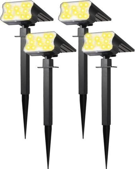 HGGH Solar Lights Outdoor Waterproof IP67, 60 LED 3 Lighting Modes Solar Spot Lights Outdoor for Yard Garden Pathway Landscape, Auto On/Off, Function 2 in 1(Warm White, 4 Pack)