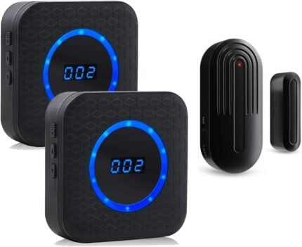 SanJie Wireless Door Chime Sensor, When Door Opens, Entry Alarm for Business/Home/Kids, 5 Adjustable Volume Ringer Alert 2 Sensors + 1 Receivers, 500 FT Range,26 Chimes
