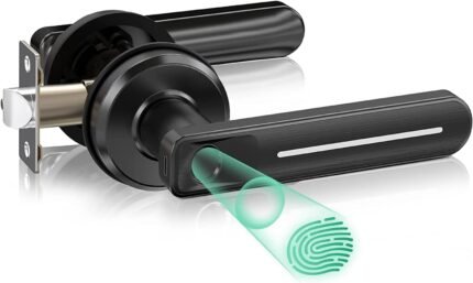 GeekTale Fingerprint Door Lock, Biometric Door Lock Keyless Entry Door Locks with Handle, Smart Door Handle Fingerprint Door Knob for Bedroom,Office,Apartments,Hotels