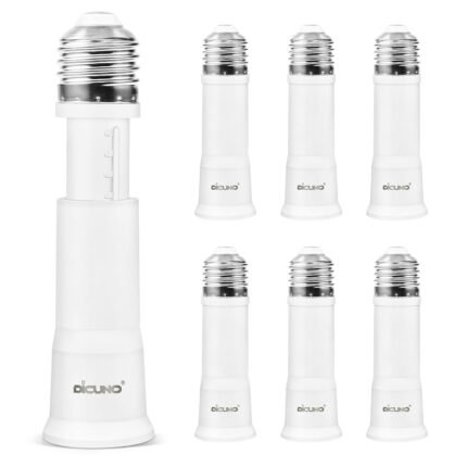 DiCUNO E26 3.15-4.13Inch/8-10.5CM Extension Flexible Socket Extender Adapter, E26 Edison Screw Converter, Light Socket Extender, Lamp Bulb Extension, 6-Pack