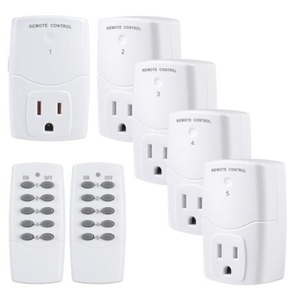 BN-LINK Mini Wireless Remote Control Outlet Switch Power Plug in for Household Appliances, Wireless Remote Light Switch, LED Light Bulbs, White (2 Remotes + 5 Outlets) 1250W/10A