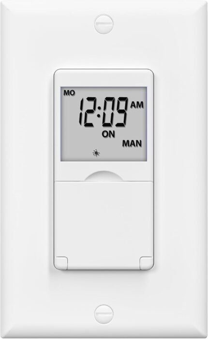 BN-LINK 7 Day Programmable in-Wall Timer Switch for Lights, Digital Light Switch Timer Indoor, Single Pole and 3 Way (Compatible with SPDT) Both Use, Neutral Wire Required, No Backlight, ETL Listed