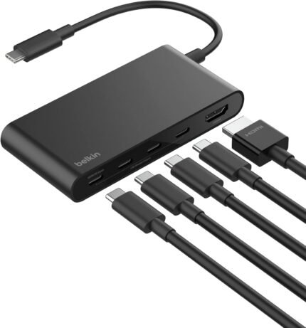 Belkin USB C Hub, 5-Port Hub w/ 4K HDMI Display @ 60Hz, 100W Power Delivery, Fast Data Transfer 10Gbps, USB C Multiport Adapter – Compatible with MacBook, iPad Pro, Chromebook, & More