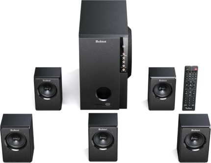 Bobtot Home Theater Systems with 5.25 inch Subwoofer, 5.1 Wired Satellite Surround Sound Speakers, 600 Watts Peak Power Deep Bass Audio Stereo System with FM Radio Bluetooth AUX DVD USB SD Input