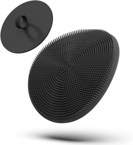 Boie USA Loop Body Scrubber – Soft Silicone-Like Exfoliating Shower Scrubber, Body Cleansing Brush – Hang-to-Wall Loofah Replacement – Body Exfoliator for All Skin Types (Black)