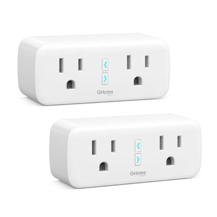 GHome Smart Plug Outlet Extender 15A, 2 Pack, WiFi Smart Plugs Compatible with Alexa & Google Home, Smart Surge Protector with Timer & Remote Control, Dual Outlets, No Hub Required, White