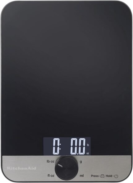 KitchenAid KQ908 Glass Surface 11 Pound Capacity Digital Kitchen and Food Scale, Black