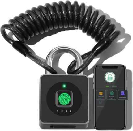 Pothunder Fingerprint Lock With APP, Steel Cable Keyless Biometric Padlock, Smart Waterproof for Gym, Locker, Helmet, Gate, Fence, Luggage