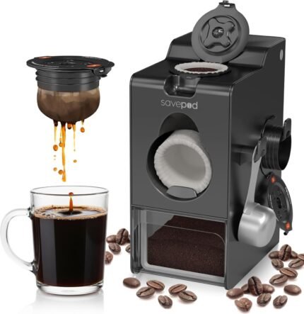 SavePod Coffee Pod Maker with Reusable Coffee Pods, Compatible with Keurig and K-Cup Coffee Machines, Smart, Easy to Use & Convenient (Black, Small)