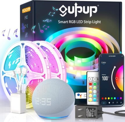 GUPUP Smart WiFi Led Lights 100 ft, Compatible with Alexa and Google Assistant Devices, Voice Control, Music Sync Color Changing Strip Lighting, App&Remote Controlled Indoor Light for Bedroom, Party