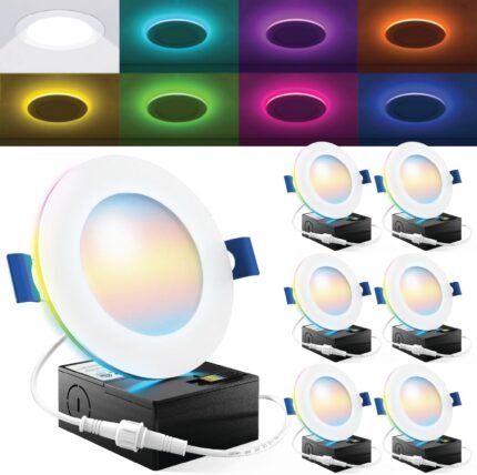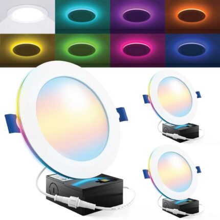 Sunco 4 Pack 6 Inch Smart Ultra Thin LED Recessed Ceiling Lights Slim, RGB+5000K Daylight, Dimmable, 15W, Canless Wafer with Junction Box – ETL.