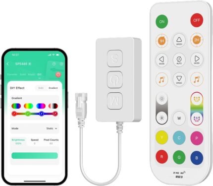 PAUTIX Wi-Fi+Bluetooth Music Pixel LED Smart Controller Kit SP548E,Compatible with Alexa/Google Assistant,App Control RF Remote Control,Addressable Color LED Strip Pixels Light DC5V-24V