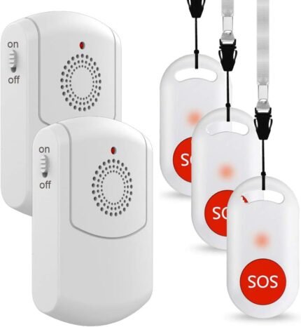 Caregiver Pager Wireless Call Button System Personal Alert Panic Button for Home Elderly Nurses Calling System with Portable Pager and Emergency Button (2Receiver+3 Buttons)