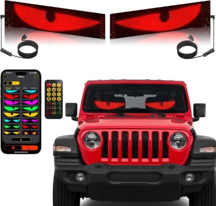 2PCS 23.4in*4.73in Devil Eyes Light for Windshield,Flexible LED Eyes for Car Windshield,Programmable RGB Full Light led Sign Smart APP Control Custom Text DIY Pattern,Flexible Car Lights Interior