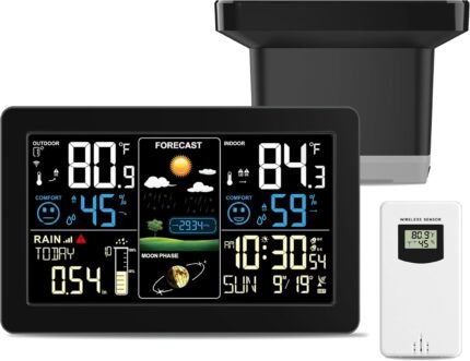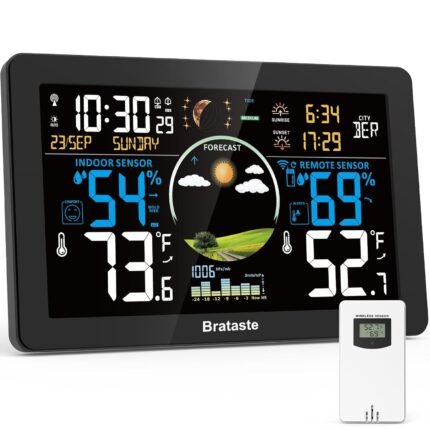 Weather Station Wireless Indoor Outdoor, Digital Thermometer with Accurate Temperature & Humidity, Large Color HD Display with Remote Sensor, Weather Forecast, Atomic Clock, Moon Phase