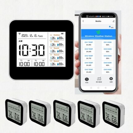 Weather Stations Wireless Indoor Outdoor Thermometer & Smart WiFi with Phone App Weather Station with Multiple sensors Temperature and Humidity Monitor & Store Data for 1 Year (2CO12 with 5 sensors)