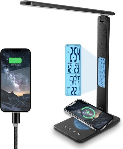 Xicyole Desk lamp,LED Lamp with Wireless Charger,USB Charger Port,Touch Control,3 Color Modes,5 Brightness Levels,Eye-Protecting Table Lamp,Led Lights for Bedroom,Home,Office,Black