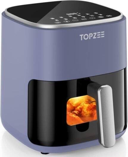 TOPZEE Air Fryer 12-in-1, 5.5-QT Compact Large Air Fryer with 360° Hot Air Circulation, 100–400°F Precise Heat, Visible Window, 95% Less Oil, Bake, Reheat, Broil, Proof, Dark Gray