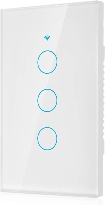 Remote Light Switch 3-Way Smart Switch Wall Light Control Remote Control Switch Voice Control Switch Single Circle Smart Light Switch for Google Home SIRI (US White)