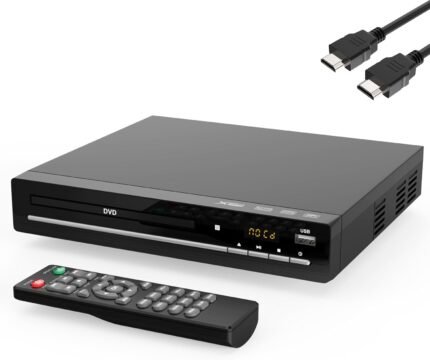 DVD Player for TV – All Region Free DVD Player with HDMI/RCA Output Cable Included – 1080P Upscaling, USB Input, Breakpoint Memory, CD Player for Home