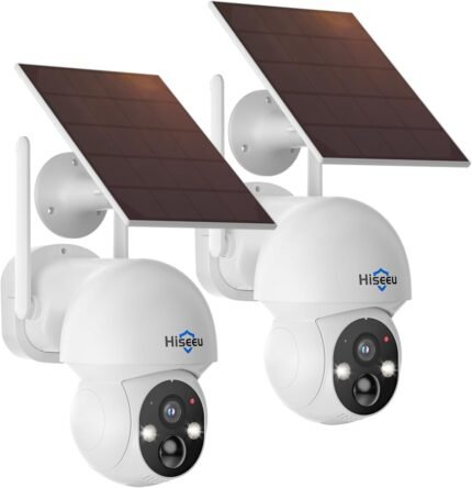 Hiseeu Solar Security Cameras Wireless Outdoor 2 Pack, Battery Powered 3K 4MP wifi Cameras for Home Surveillance, PIR/AI Motion Detection, Waterproof, Color Night Vision, 2-Way Audio, Cloud/SD Storage