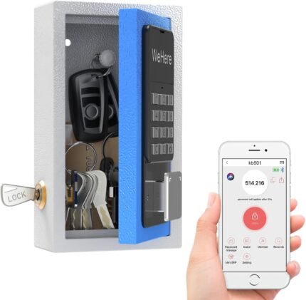 WeHere Key Lock Box Wall Mount, OTP/Fixed Password, APP Bluetooth/Wi-Fi, Spare Key Unlock, Porch Smart LockBox, Combination Keybox for Home, Realtors, Apartments, Garage, Store, Office