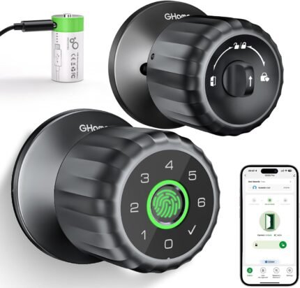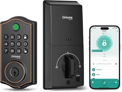 GHome Smart deadbolt Lock, Keyless Entry Door Lock for Front Door, App Remote, Auto Lock, Easy Installation, Fingerprint Door Lock with Keypad for Home, Airbnb, Apartment, Garage, Black