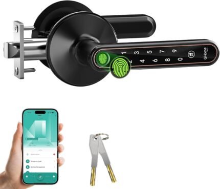 GHome Smart Fingerprint Door Lock, 4 in 1 Smart Fingerprint Door Knob with Keypad, App Control, Auto Lock, Biometric Door Knob with Lock for Bedroom, Apartment, Garage, Home & Office
