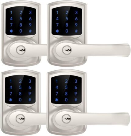 HIDALIFE Keyless Entry Door Lock with Keypad and Handle for Front Doors, Touchscreen, Anti-peep Password, Auto-Locking, Satin Nickel 4 Pack