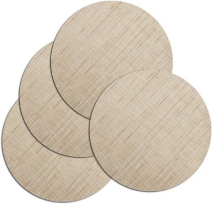 Round Placemats Set of 4 Woven Table Mats Washable Non-Slip Place Mats 13.8 Inch for Christmas Decoration Home Wedding Party,Beige