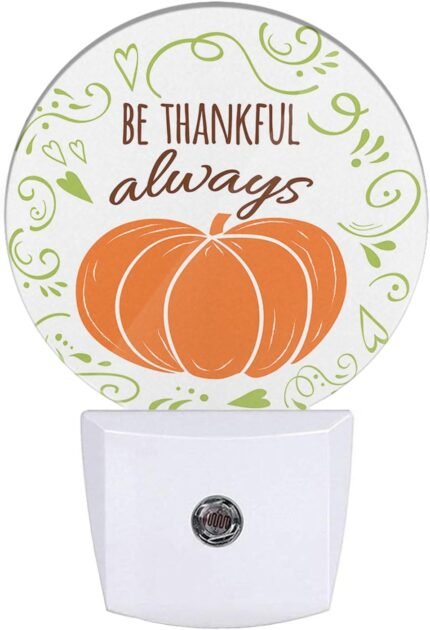 Be Thankful Always Decorative Night Light Plug in Pumpkin Thanksgiving Day Auto LED Lighting Energy Saving Round Lights Gifts for Boys Girls Men Women
