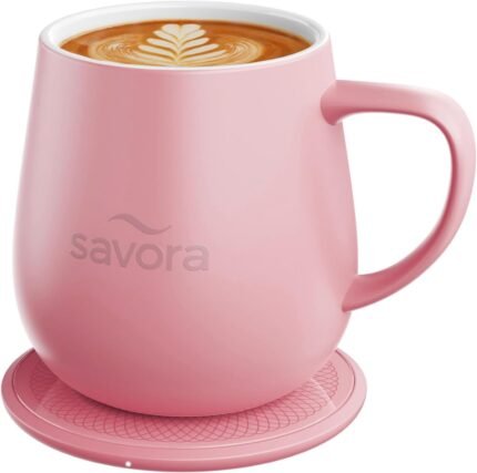 12oz Heated Coffee Mug | Barista’s Choice | Exclusive Wireless IntelliHeat Pad | Temperature Control Maintains 135°F | Hand-Crafted Ceramic Mug & Lid | Great for Tea Drinkers | Backed for Life – Pink
