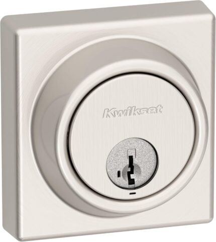Kwikset 817 Deadbolt Lock, Satin Nickel Square Exterior Keyed Front Entry Door, Pick Resistant SmartKey Rekey Security, Single Cylinder Dead Bolt, with Microban Protection
