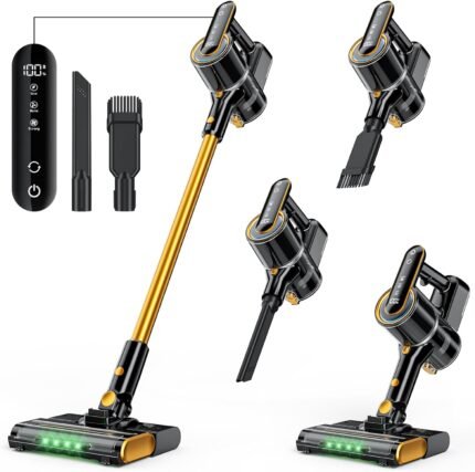 Cordless Vacuum Cleaner for Home, Powerful Stick Vacuum with Rechargeable Battery, Green Light Anti-Tangle Brush, 6-in-1 Lightweight Handheld Vacuum for Pet Hair, Hard Floor, Carpet