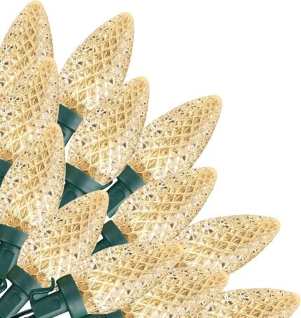 Dazzle Bright C9 Christmas Lights Outdoor, 50 LED 33ft Waterproof Green Wire String Lights, Indoor Outdoor Fairy Lights for Christmas Tree Xmas Yard Party Wedding House Decorations (Warm White)