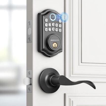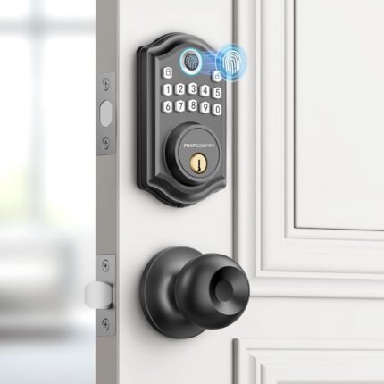 DS10 Keyless Entry Door Lock with Door Knob, Fingerprint Door Lock, Electronic Keypad Deadbolt, Smart Door Lock, Smart Locks for Front Door, Auto-Lock – Matte Black