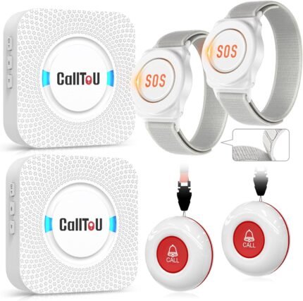 CallToU Caregiver Pager Wireless Call Button Nurse Alert System 500+ Feet for Home/Elderly/Patient/Disabled 1 Plugin Receiver 1 Waterproof Transmitter 1 Watch Transmitter