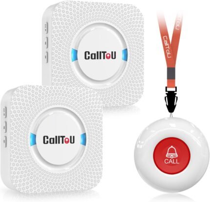 CallToU Caregiver Pager Wireless Call Button Nurse Alert System 500+ Feet for Home/Elderly/Patient/Disabled 2 Plugin Receiver 1 Waterproof Transmitter