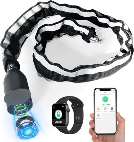 Eseesmart Bike Chain Lock, Fingerprint Bike Locks Heavy Duty Anti Theft, 3.28 Feet Security Bike Locks with APP, Waterproof Smart Cable Lock for Bike, Bicycle, Scooter, Motorcycle, Door, Gate, Fence