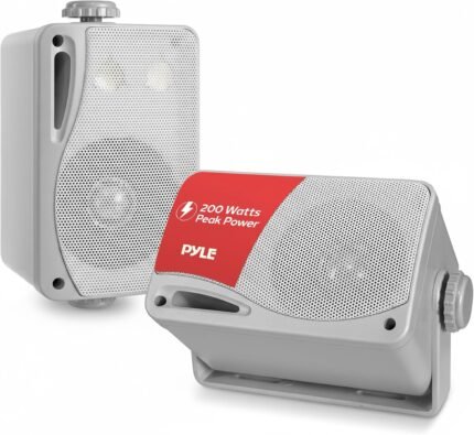Pyle 3-Way Waterproof Marine Box Speakers – 3.5″ 200 Watt Dual Indoor Outdoor Speaker System – Weatherproof/Waterproof Outdoor Speaker – Home, Boat, Pool, Patio Indoor Outdoor Use PLMR24S (Silver)