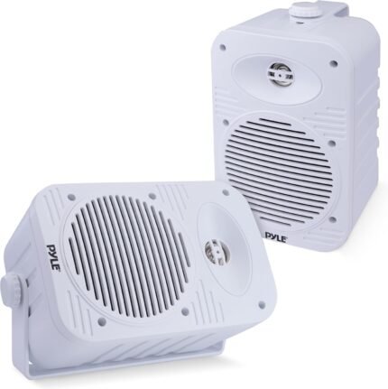 Pyle 3-Way Indoor & Outdoor Box Speaker System – 3.5″ 200 Watt Compact Wall Mount Speakers for Home, Patio, Deck, Garage, Poolside, or Studio Use – Dual Speaker Set – PLMR24 (White)