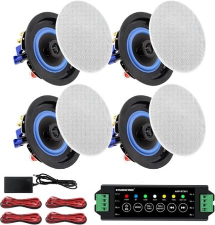 STUDIOFINIX 4 Inch Bluetooth Ceiling Speakers,320W 2-Way System, 4 Speakers, Wired Surround Sound for Living Room, Office,Kichten,Study Room,Basement,Covered Patio and Flush Mount