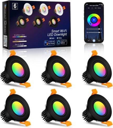Smart WiFi 2 Inch Black LED Downlight, 5W 120V RGBCW Recessed Light, Dimmable COB 2700K-5000K, Compatible with Alexa/Google, LED Can Lights with Driver, 6 Pack