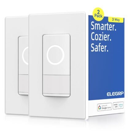 ELEGRP Smart Light Switch, 2.4GHz Wi-Fi Light Switch Compatible with Alexa & Google Assistant, Neutral Wire Required, APP Control and Timer Schedule, UL Certified,Single Pole, White, 2 Pack