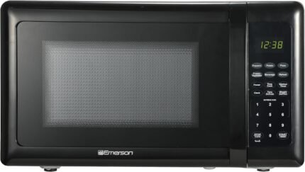 Emerson MW7302B Compact Countertop Microwave Oven with Touch Control, LED Display, 700W, 10 Power Levels, 6 Auto Menus, Glass Turntable and Child Safe Lock, 0.7 Cu., Ft. Black