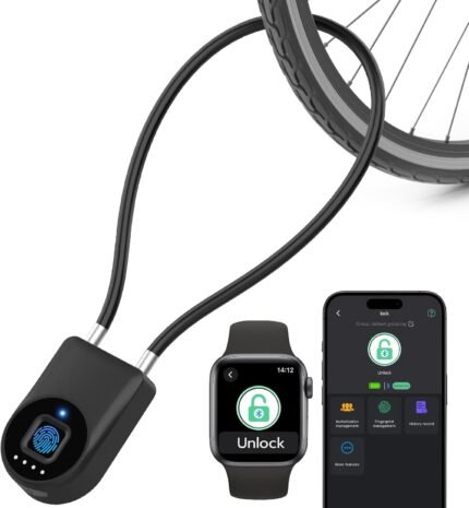 eLinkSmart Fingerprint Padlock, Fingerprint Cable Lock with Bluetooth APP Contral, 15” Waterproof Keyless Smart Cable Lock Heavy Duty Anti Theft for Bike, Outdoor, Fridge, Gate, Fence, Black