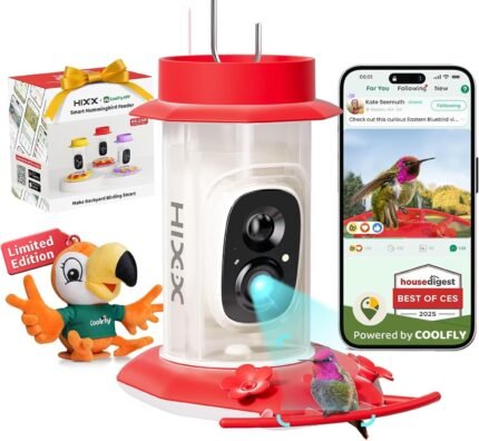 HIXX Smart Hummingbird Feeder with Camera Solar Powered with CoolBirdie Collectible, Ant Moat& Bee Proof, Easy Clean, Includes Limited Bird Decor, for Hummingbird Lover&Family