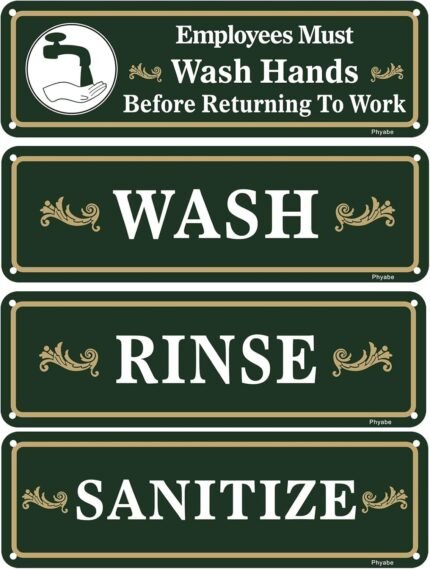 Wash Rinse Sanitize Sink Sign, Employees Must Wash Hands Before Returning To Work, 10 x 3 inch Rust Free Aluminum Wash Your Hands Sign, Weather Resistant, Waterproof, Durable Ink, Easy to Install